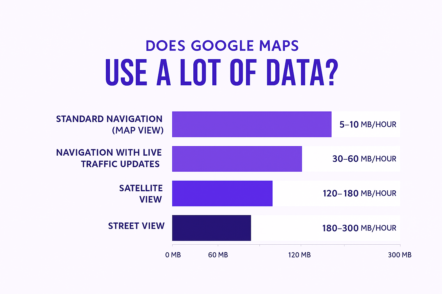 Still, if you rely heavily on turn-by-turn navigation or use extra features like satellite view and live traffic updates, your data usage can increase significantly. For instance, one hour of driving with satellite view can easily use 120 to 180 MB per hour. And if you’re abroad, roaming charges can make even small amounts expensive. That’s why travelers often rely on international eSIM options instead of paying high roaming fees.