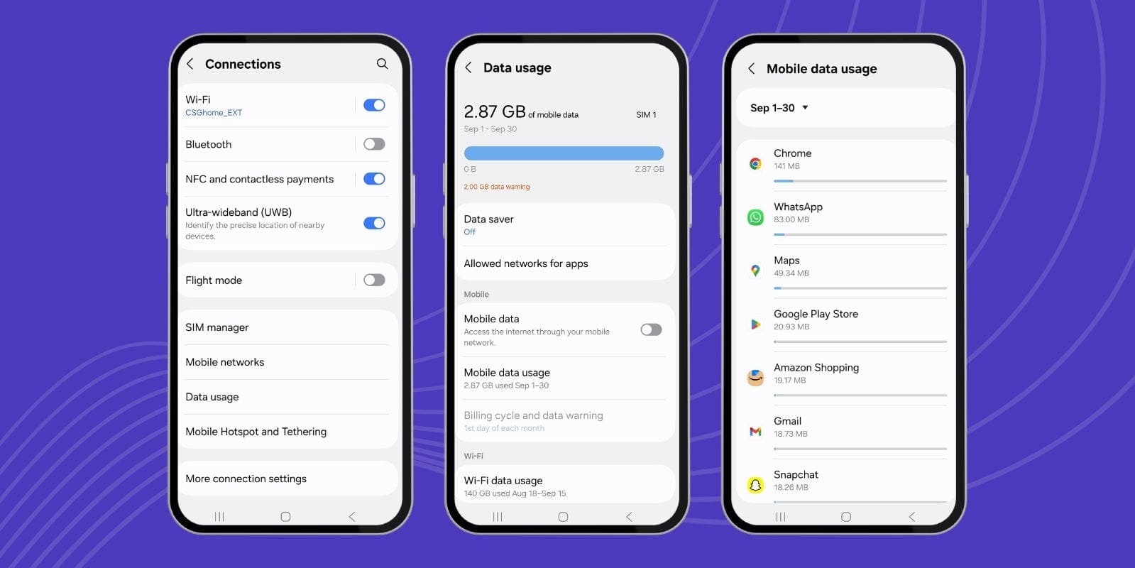 Every phone allows you to not only check your data usage but also reduce the usage through different options, such as limiting the data usage and turning on low data saving mode.