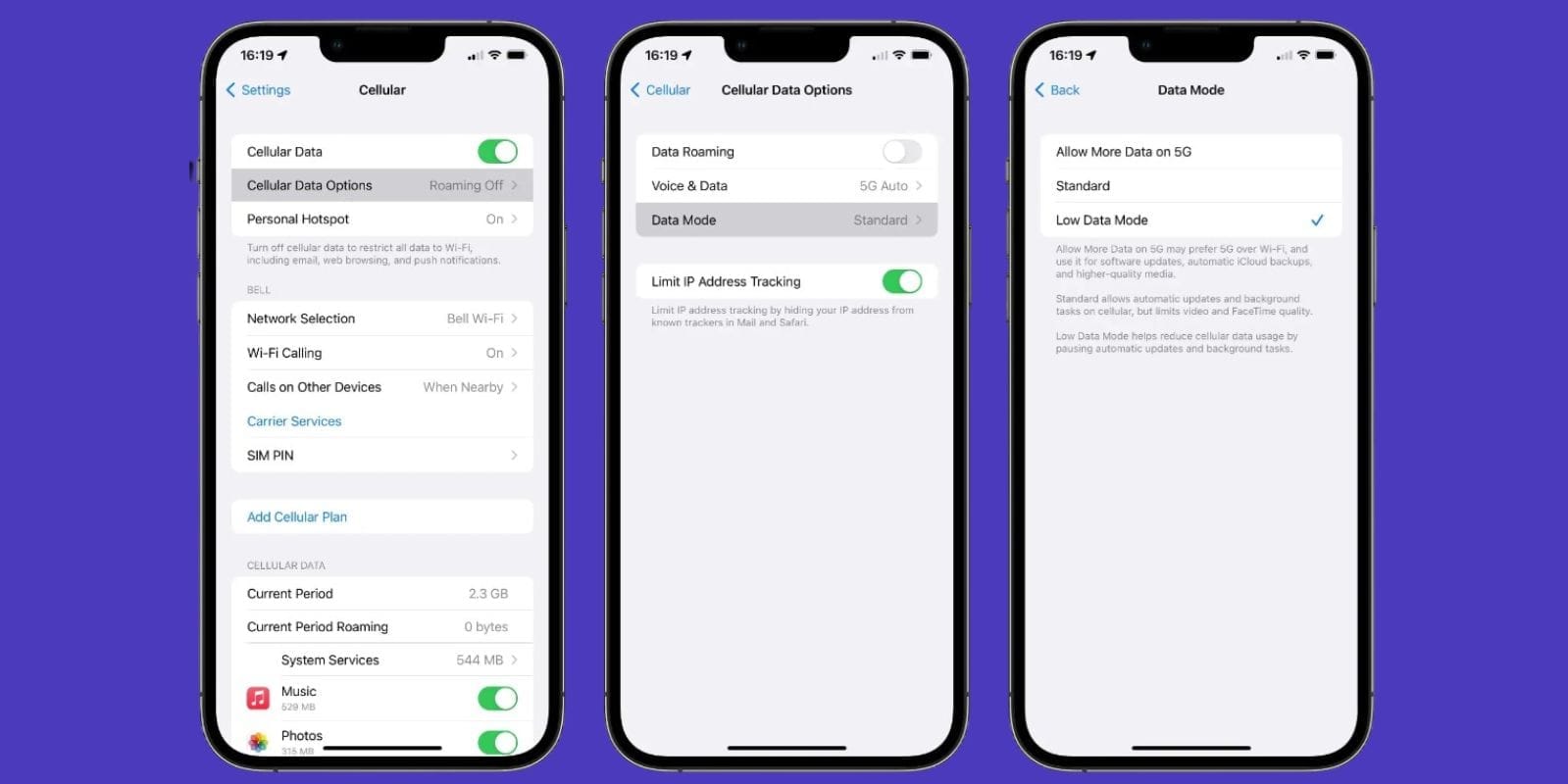 Go to Settings > Cellular > Cellular Data Options > turn on Low Data Mode. This reduces background activity and can significantly decrease your data usage.