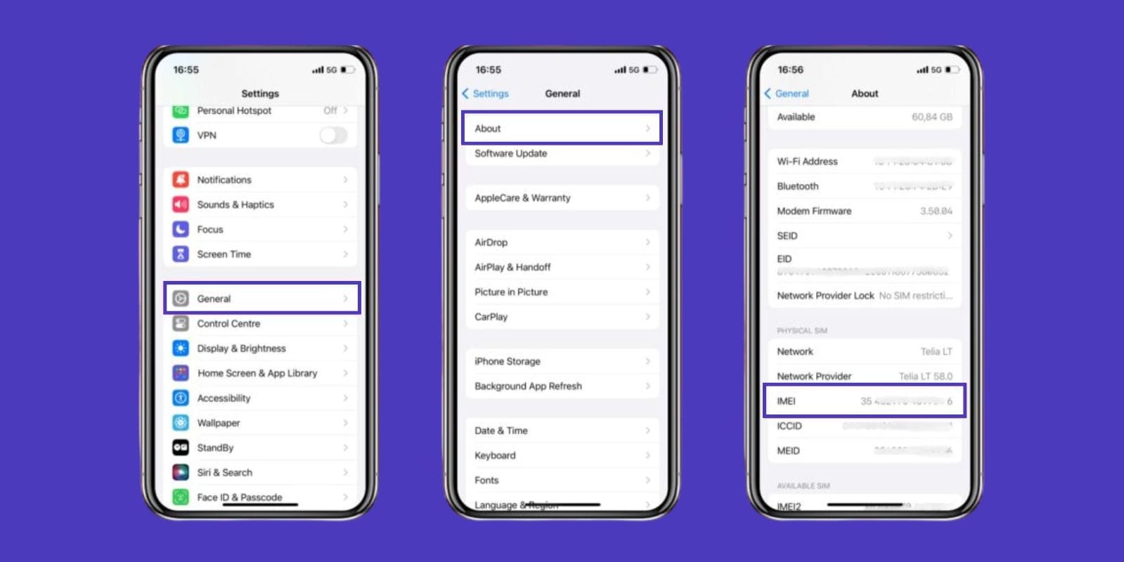 Every iPhone has a unique IMEI number. Go to Settings > General > About and scroll down to find your IMEI. You can touch and hold the number to copy it.